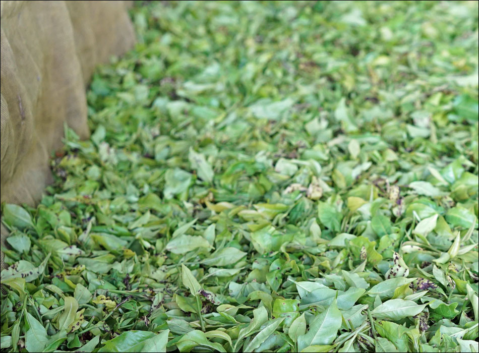 室内萎凋(いちょう)といって、時折茶葉同士をすり合わせて発酵を促します。