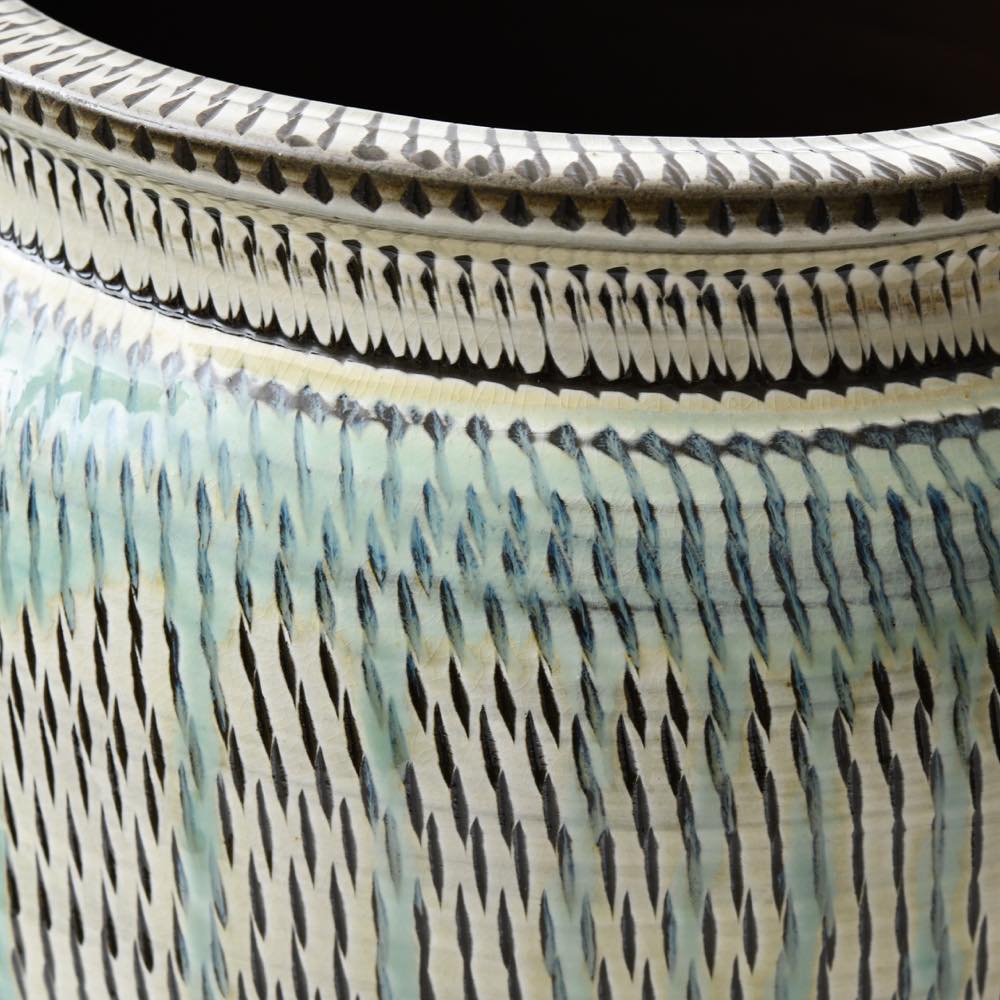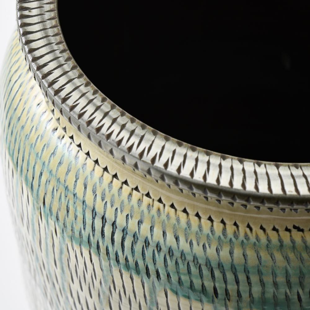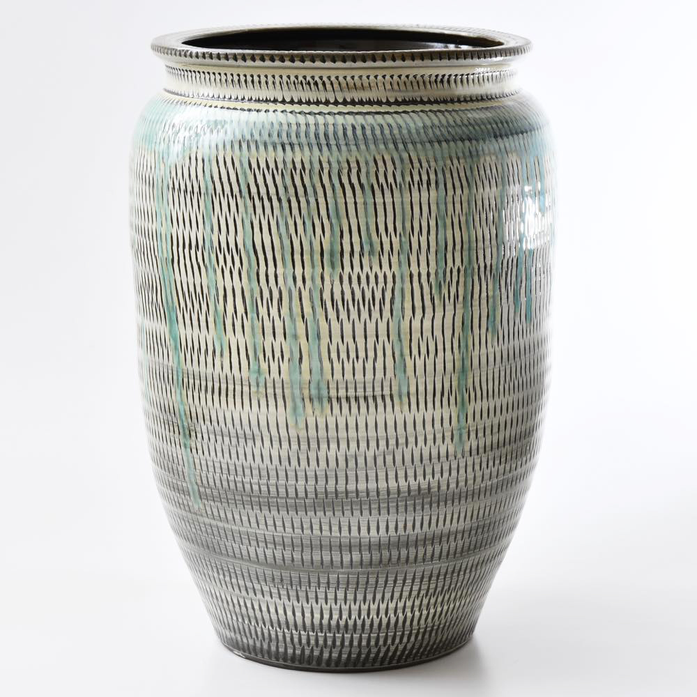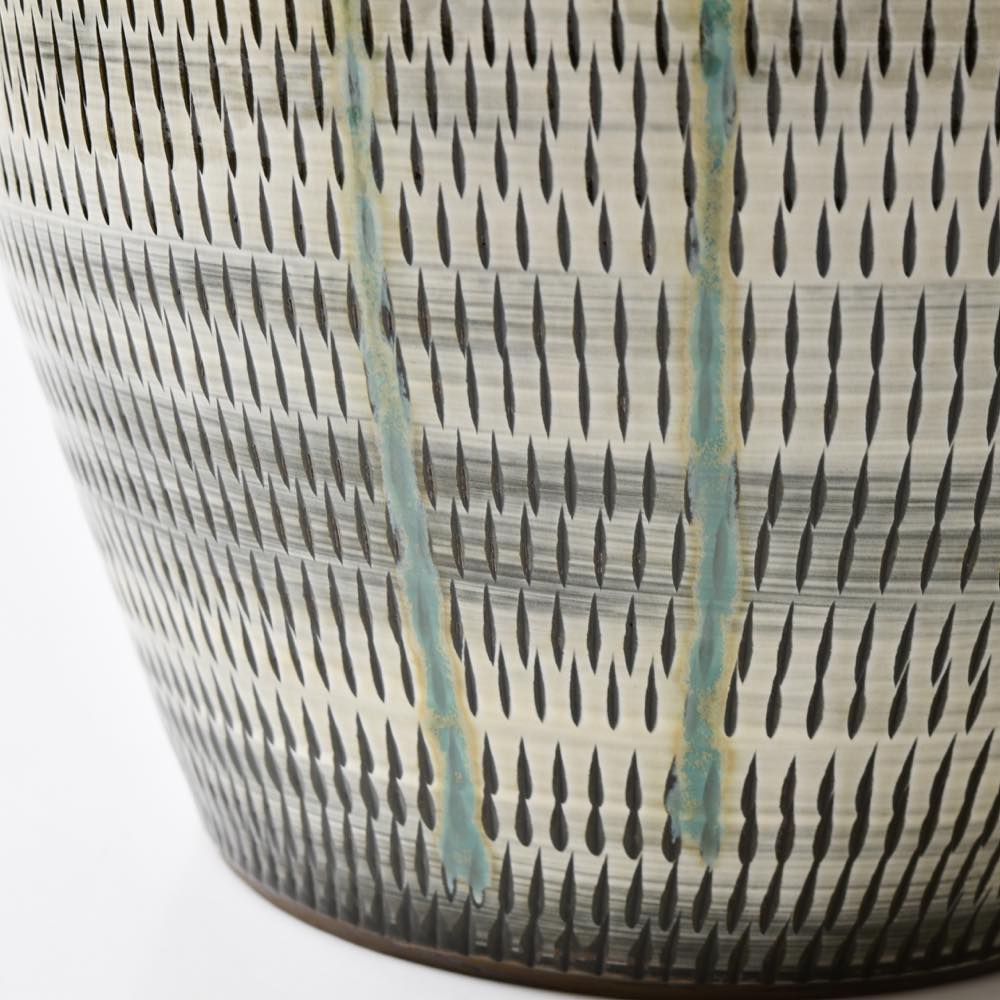 品名 小鹿田焼 坂本浩二窯 一斗五升甕(傘立て) 飛び鉋 白